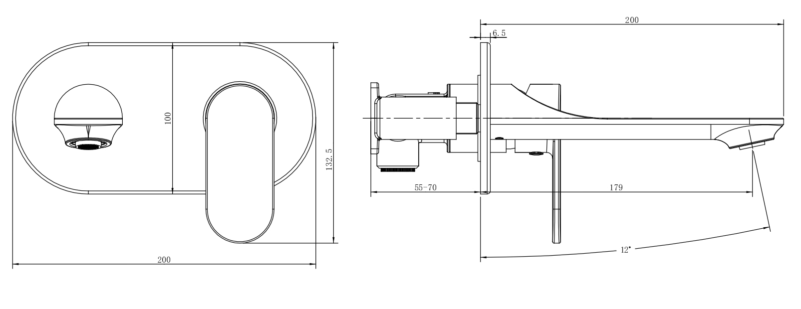 Robinet mitigeur lavabo mural encastré chromé, Seine