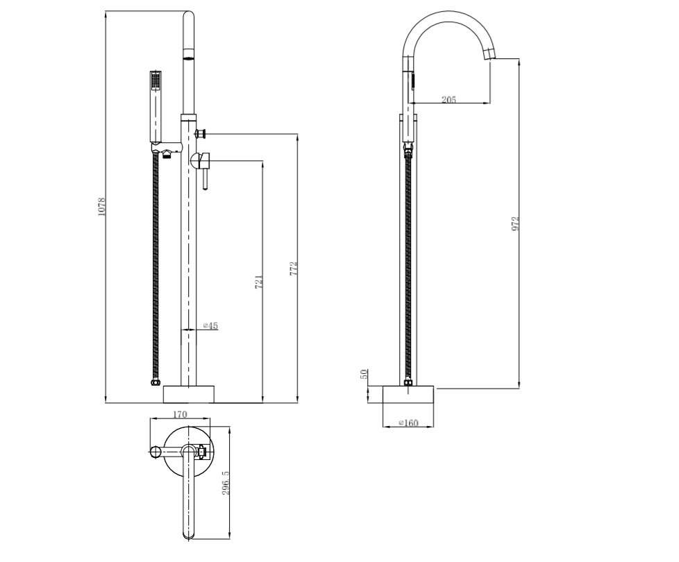 Robinet mitigeur de baignoire sur pied, blanc mat, Châtelet.