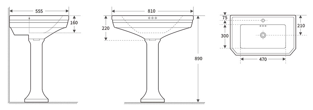 Lavabo colonne 3 trous, Marilyn. Ce lavabo colonne de style rétro-chic est un intemporel de la salle de bains. Ce lavabo dispose de 3 percements pour y intégrer un robinet mélangeur. Sa vasque est équipée d'un trop-plein. Pied inclus. À poser en appui contre un mur. Dimensions : L.81 x P.55 cm. Hauteur : 87 cm.