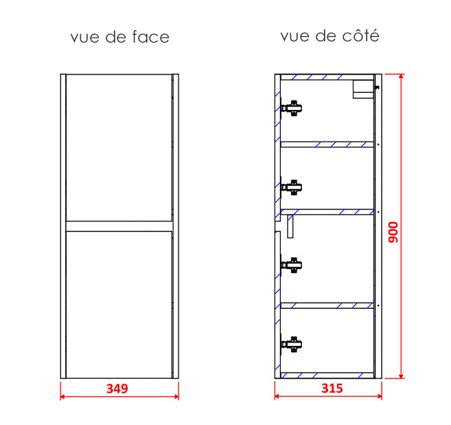 La structure du meuble colonne est réalisée en panneaux de particules mélaminés offrant une excellente résistance en milieu humide.