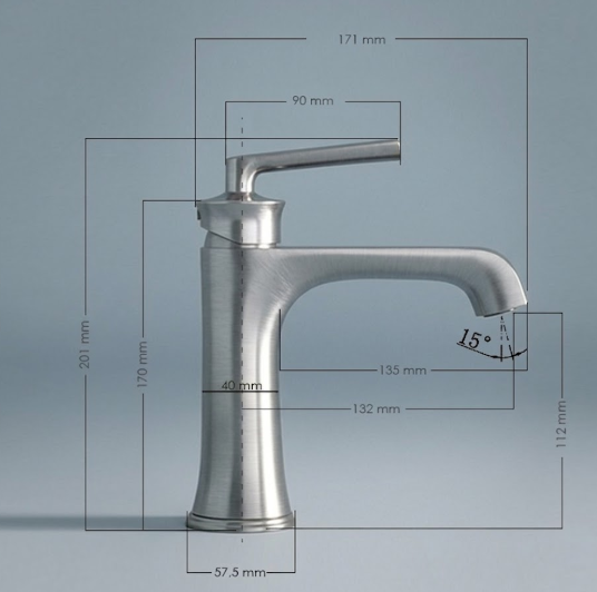 Robinet mitigeur lavabo inox brossé Art Déco.