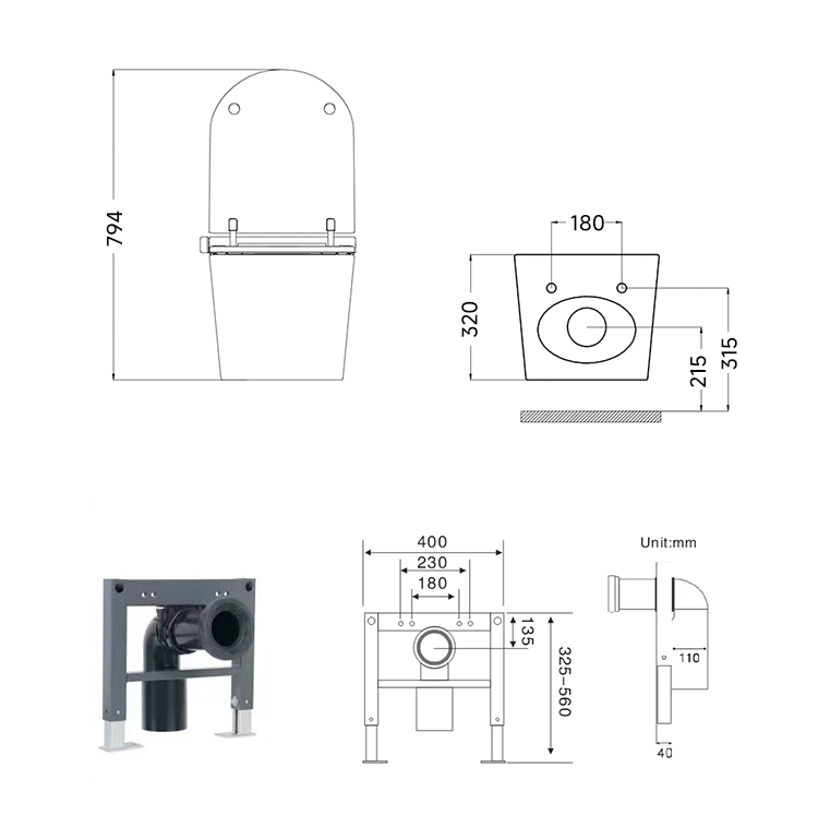 WC suspendu japonais+ Bâti support, E-Smart.