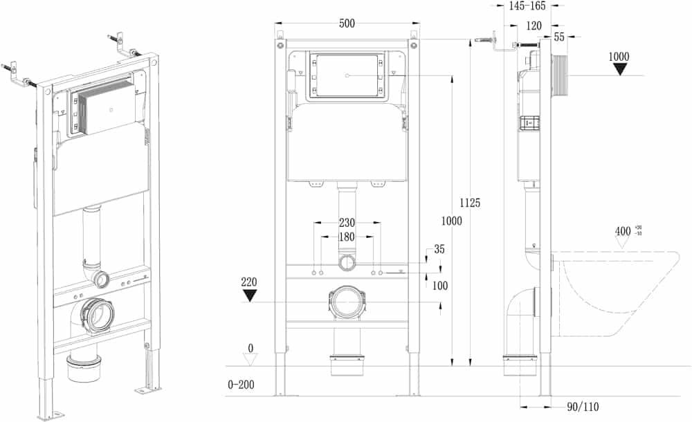 Ce bâti support pour sol ou mur est compatible avec toutes les cuvettes et son installation est possible sur tout type de mur. Vendu avec une plaque de déclenchement double chasse. Pipe coudée et pipe droite Ø 100 mm incluse. Mécanisme compatible Gébérit