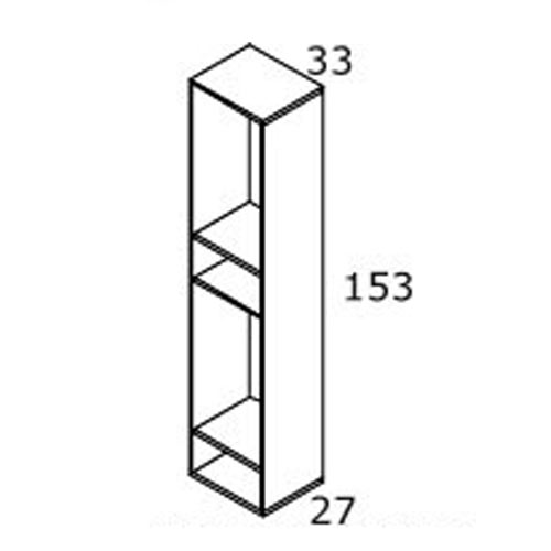 Colonne de rangement de salle de bain suspendu 153x33 cm, ouverte.