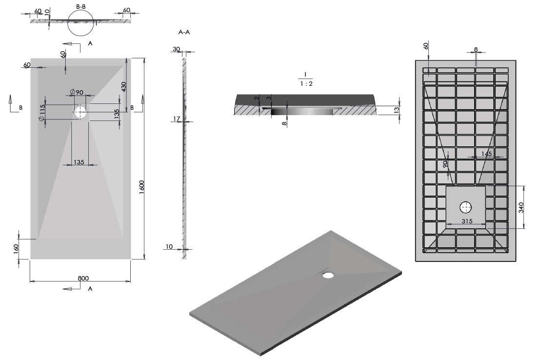 Extra-plat, a surface antidérapante est antibactérienne. Il est redécoupable, ce qui lui permet de s'adapter à toutes les formes de murs. La grille noire carré et la bonde sont incluses. Garantie 3 ans.