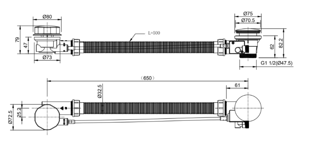 Bonde à système clic-clac avec siphon.