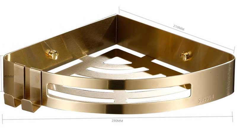 Porte-savon d'angle en acier inoxydable finition doré brossé.