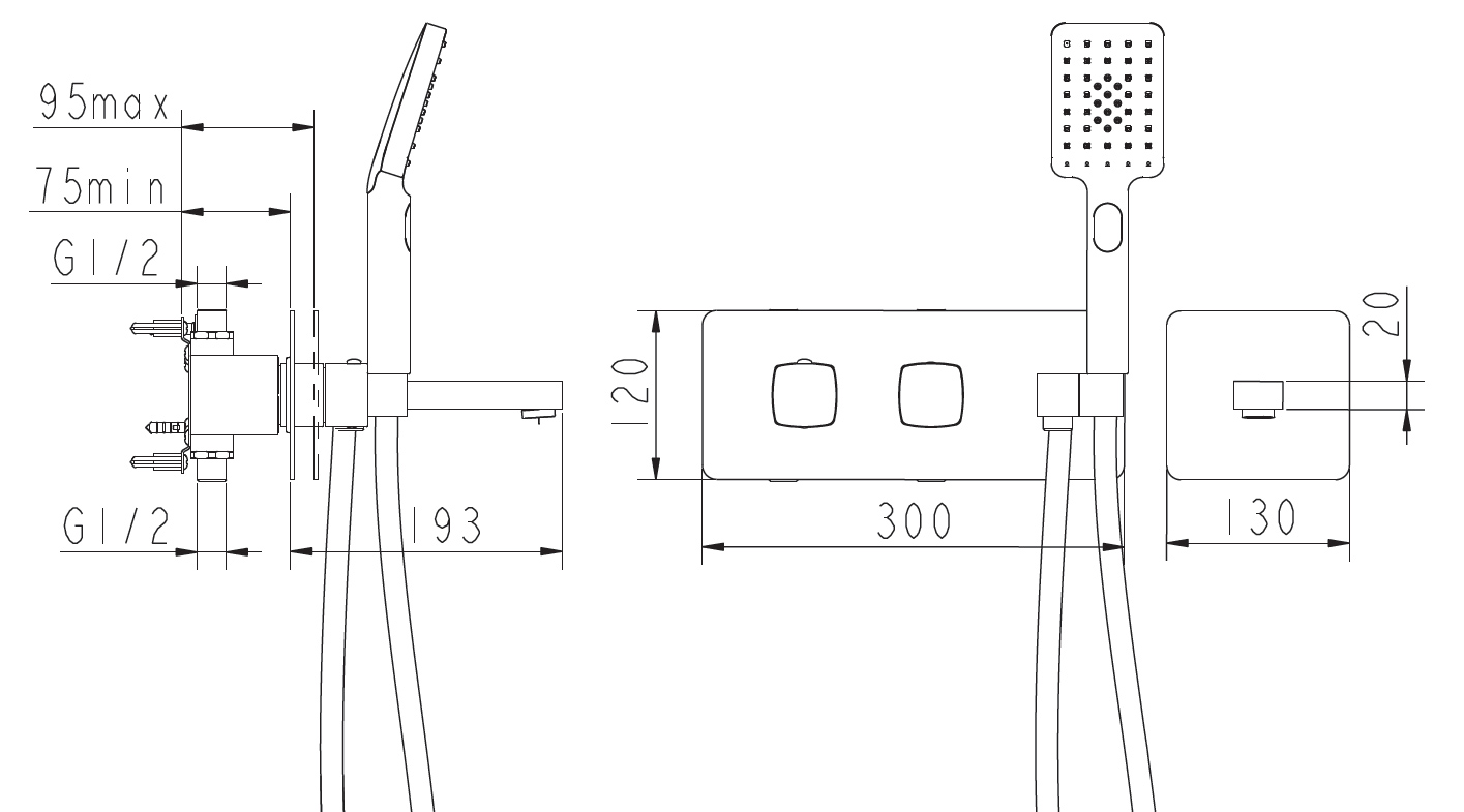 Mitigeur thermostatique bain douche finition marbre blanc, à encastrer, Infinity Elements.