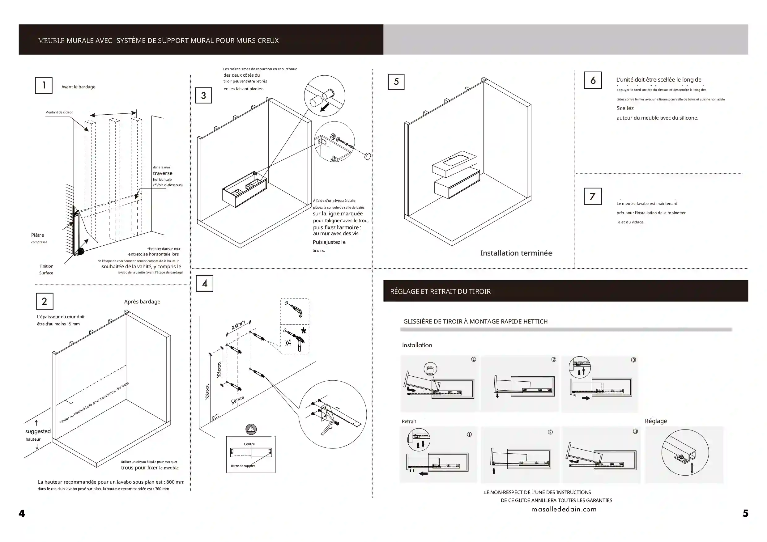 Meuble salle de bain plan pierre 75cm - Liam