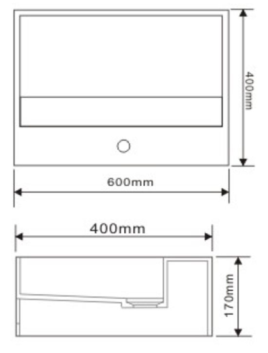 Avec plage de robinetterie et sans percement (la résine se perce facilement à l'aide d'une scie cloche). Vidage caché "à lame". Sans trop plein, il faudra l'associer avec une bonde à écoulement libre en option. Porte-serviettes directement découpé dans la masse. Dimensions 60 x 40 x 17 cm