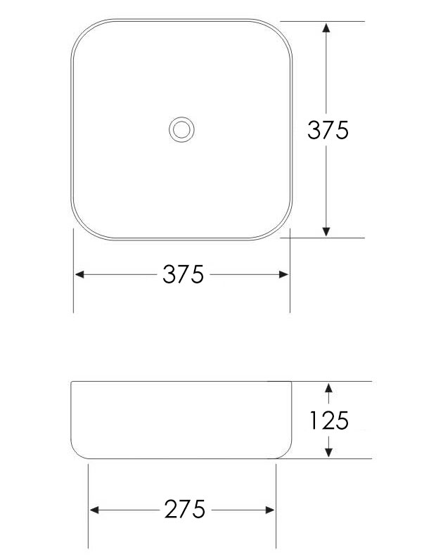 Vasque à poser 37,5 x 37,5 cm carrée, céramique, Noir mat, made in France, Kami