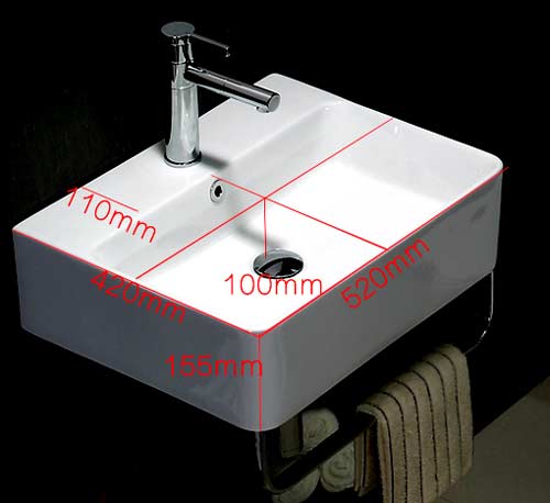 Ce lavabo suspendu aux bords arrondis trouvera facilement sa place dans une salle de bains ou dans les toilettes. Son porte-serviettes intégré très pratique permet également de gagner de la place. Plage de robinetterie avec percement monotrou. Avec trop-plein cerclage chromé. Robinetterie, bonde et siphon non fournis. Dimensions : L52 x P42 x H15,5 cm / L60 x P42 x H13,5 cm ou L70 x P42 x H13,5 cm
