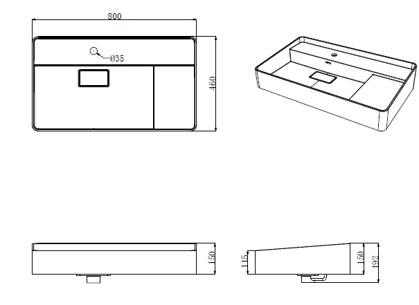 Particulièrement élégant, le lavabo - vasque rectangulaire en Solid Surface ELEMENTS d'INFINITY avec tablette.