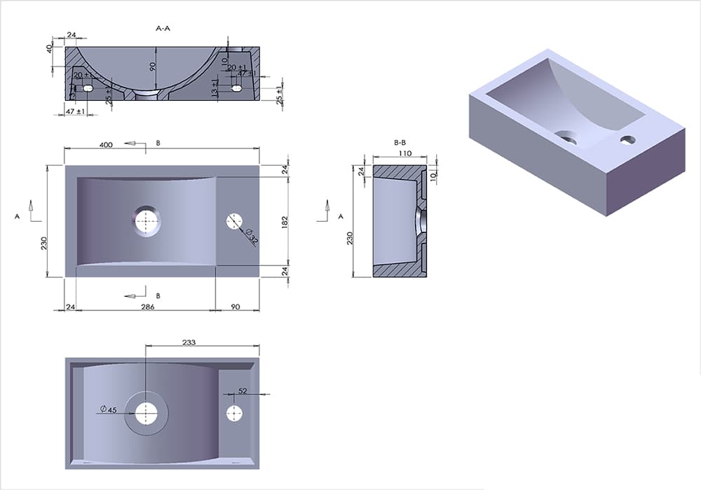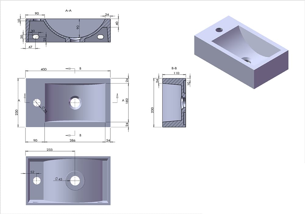 Lave mains suspendu 40x23 cm, gauche ou droite, Blanc mat.