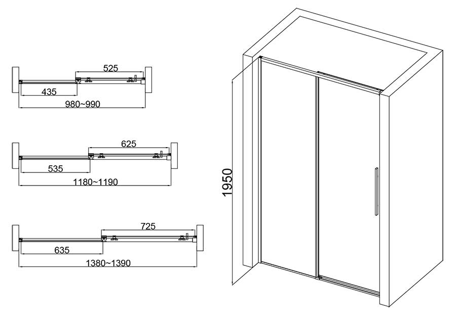 La porte de douche Arena 2 est une porte coulissante avec profilés chromés, composée d'une porte coulissante et d'une paroi fixe;