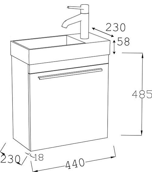Avec sa faible profondeur, le meuble lave-main suspendu, blanc brillant, Mini est idéal pour les espaces réduits. Il dispose d'un plan vasque réversible en résine minérale blanche mate et est équipé d'une porte avec système de fermeture amortie, avec une élégante poignée finition chromé. Robinetterie et siphon non fournis. Vasque avec percement, sans trop-plein, à compléter avec une bonde à clapet fixe.