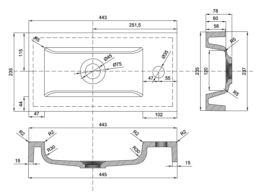 Meuble lave-mains blanc et vasque en résine mate , 44cm, Mini.