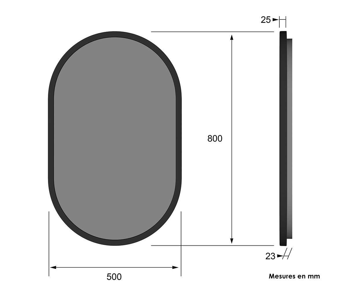Le miroir LED Corcega oblong, de 50 x 80 cm, vous est proposé avec son cadre noir mat avec rétro-éclairage. Ce miroir à suspendre est équipé d'un interrupteur Touch Control pour un contrôle de l'éclairage grâce à un capteur sensitif. Epuré et élégant, il s’intègrera à tous types de salle de bains et vous procurera une lumière douce et naturelle. Il est garanti 3 ans.