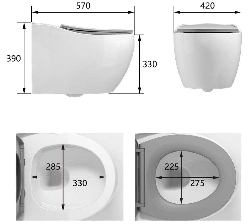WC suspendu, gris clair mat + abattant slim, Globo.