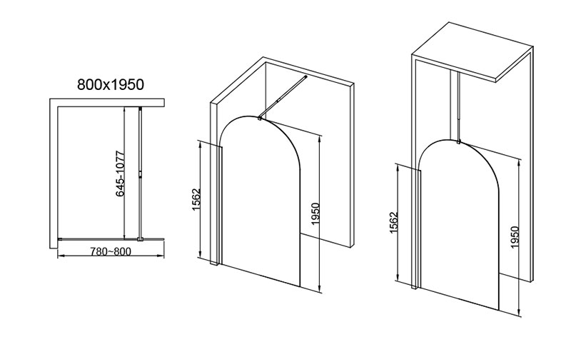 Fabriquée en verre trempé Securit de 8 mm avec traitement anti-calcaire. Cette paroi de douche est fournie avec une barre de rigidité extensible de 64,5 à 107,7 cm. Modèle réversible gauche ou droite. La paroi, avec son arche élégant et original s'accorde parfaitement avec la robinetterie Châtelet ou Deauville dorée brossée.