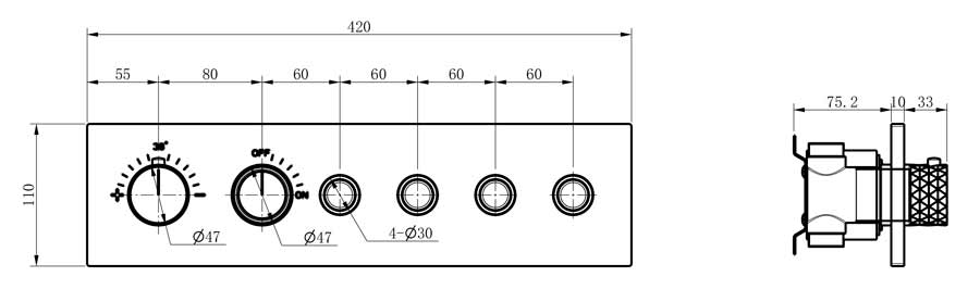 Le mitigeur thermostatique inox brossé avec son système push et son design intemporel s'adapte parfaitement à une salle de bains contemporaine.