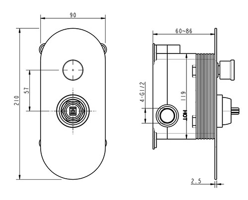 Composition mitigeur bain-douche en laiton chromé Flow Round.