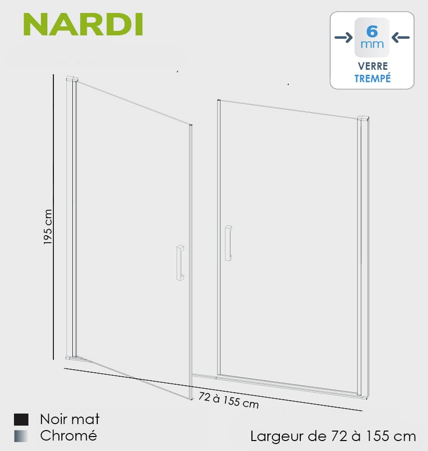 Idéale pour les petites salles de bain et les personnes à mobilité réduite. Fabriquée en verre trempé de 6mm , elle optimise l'espace tout en offrant une ventilation améliorée.