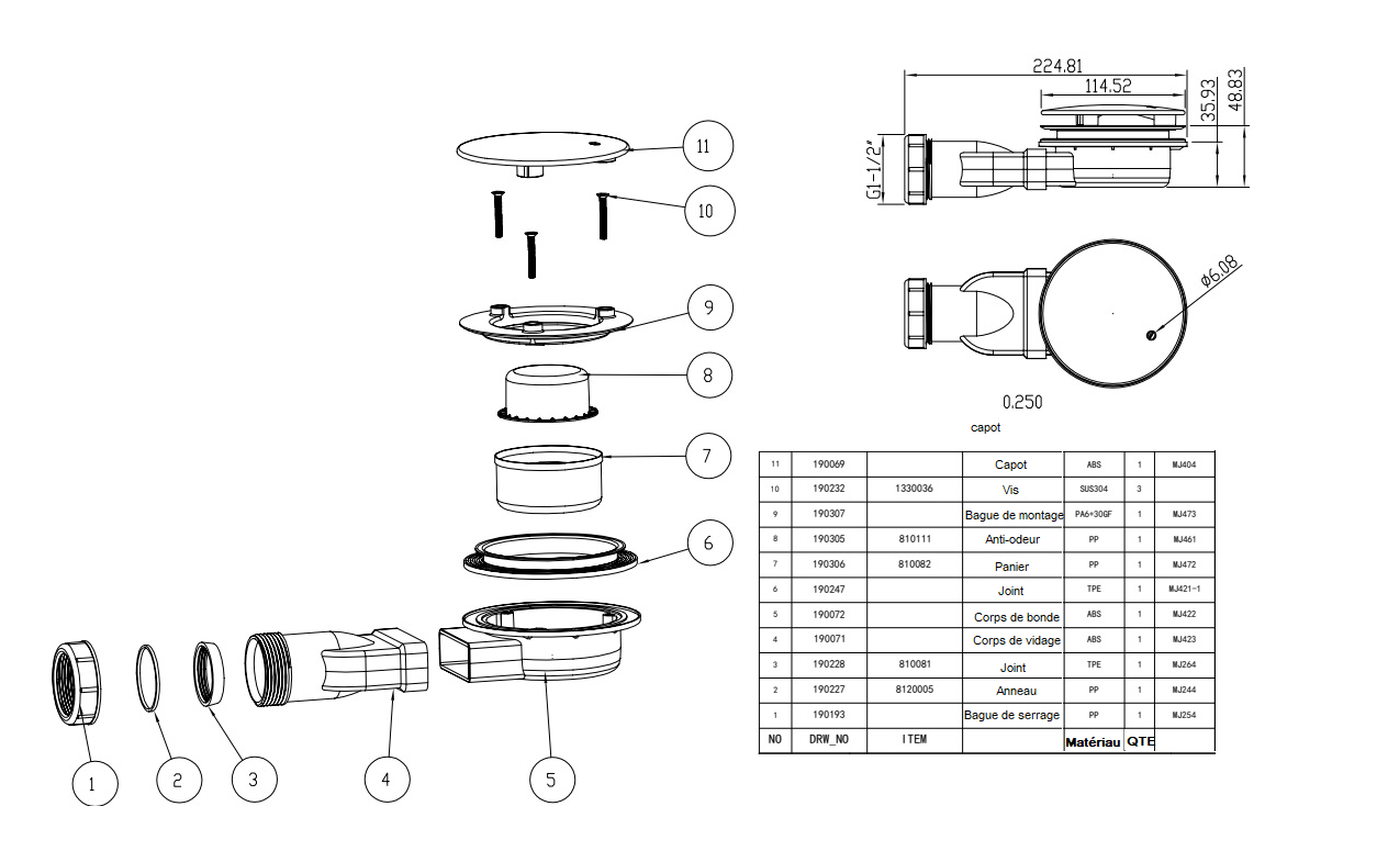 Grille blanche design carré et bonde slim incluses.