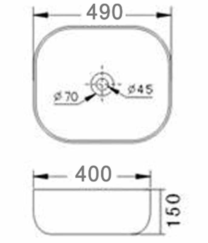 Sans trop-plein, à compléter avec une bonde à clapet fixe. Dimensions : L49 x l40x H15 cm.