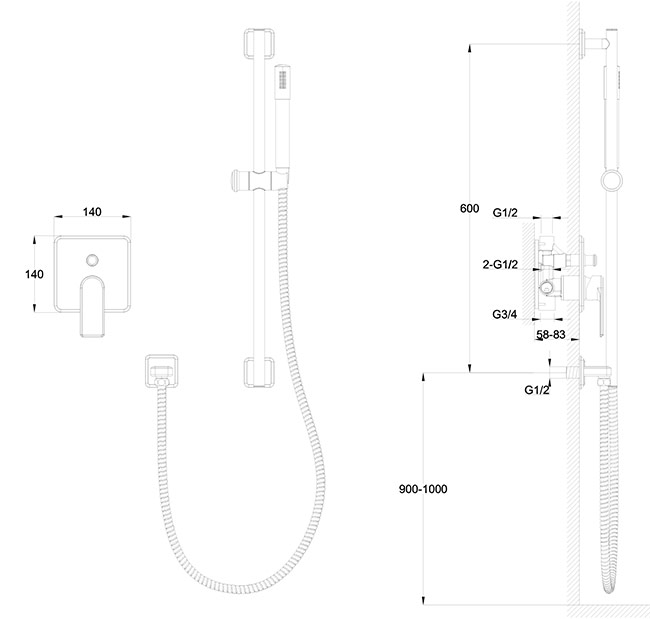 Pack de douche chromé