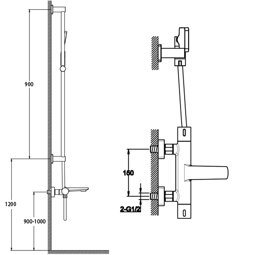 Robinet mitigeur lavabo mural, chromé et noir mat + bonde, Alma