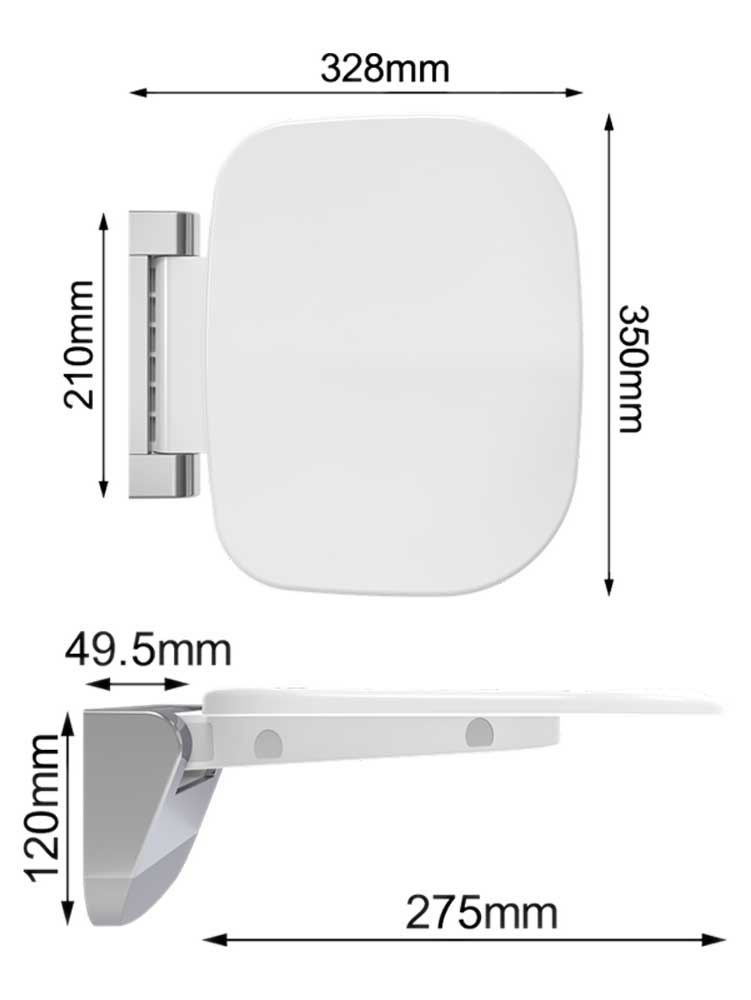 Siège repliable pour douche noir, ergonomique et facile d'entretien. Équipé de charnières en acier inoxydable et siège thermodur. Certifié pour supporter jusqu'à 200 Kg.