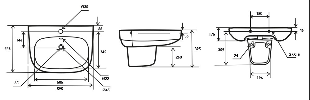 Lavabo suspendu Gold + demi colonne 59x39 cm, céramique