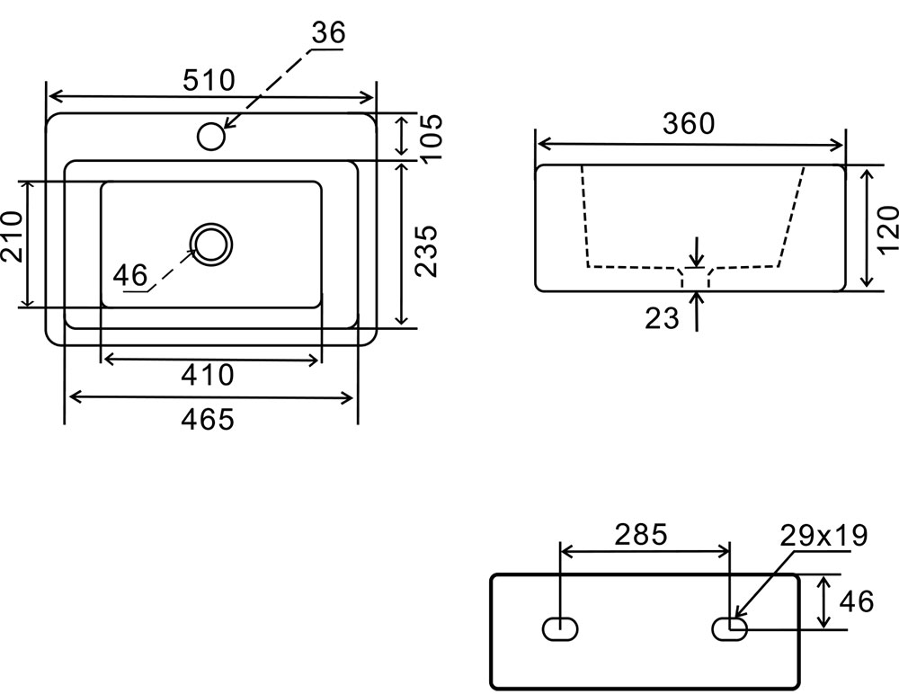 Réalisée en céramique blanche de qualité. Sans trop-plein, à compléter avec une bonde à clapet fixe. Bonde et siphon à commander séparément. Dispose d'une plage de robinetterie avec percement monotrou pour accueillir un robinet mitigeur. Dimensions : L.51 x l.36 x H.12cm