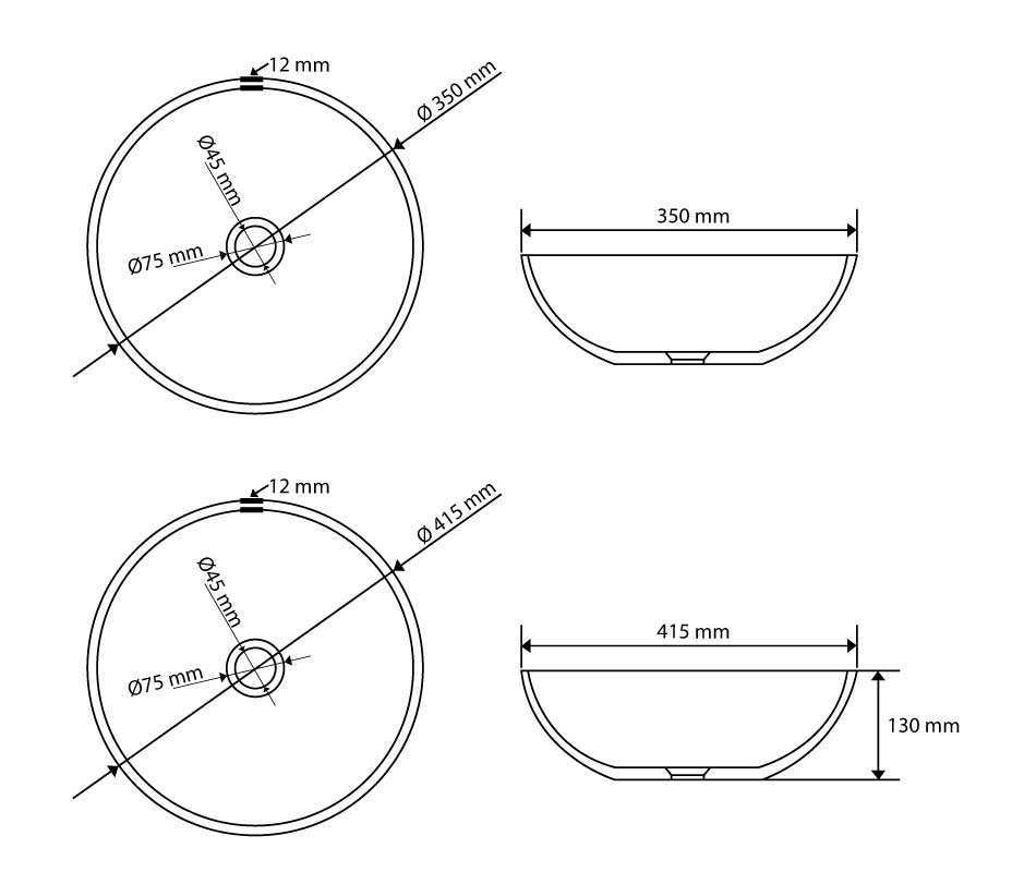 Vasque à poser en verre trempé de 35 cm ou 41,5 cm de diamètre.