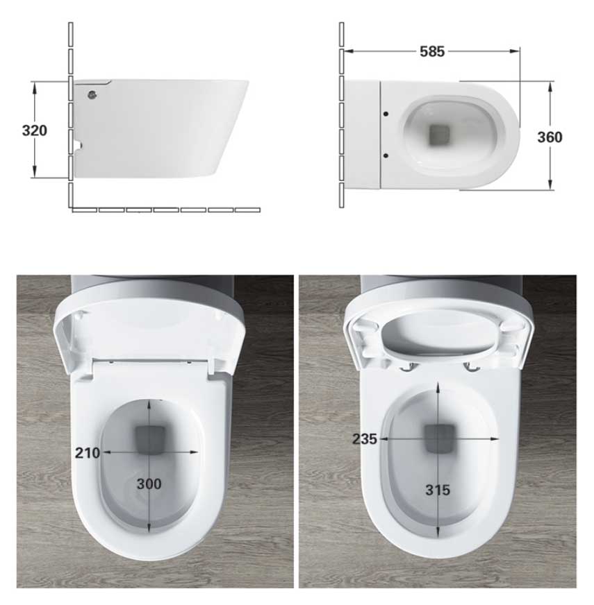 WC siphonique suspendu en céramique blanche, W2.0.