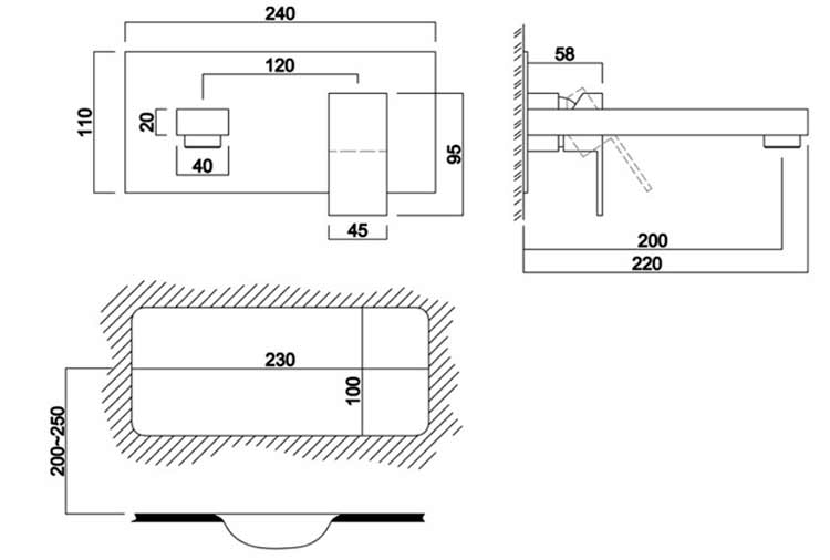 Mitigeur lavabo mural encastré chromé, Tuileries