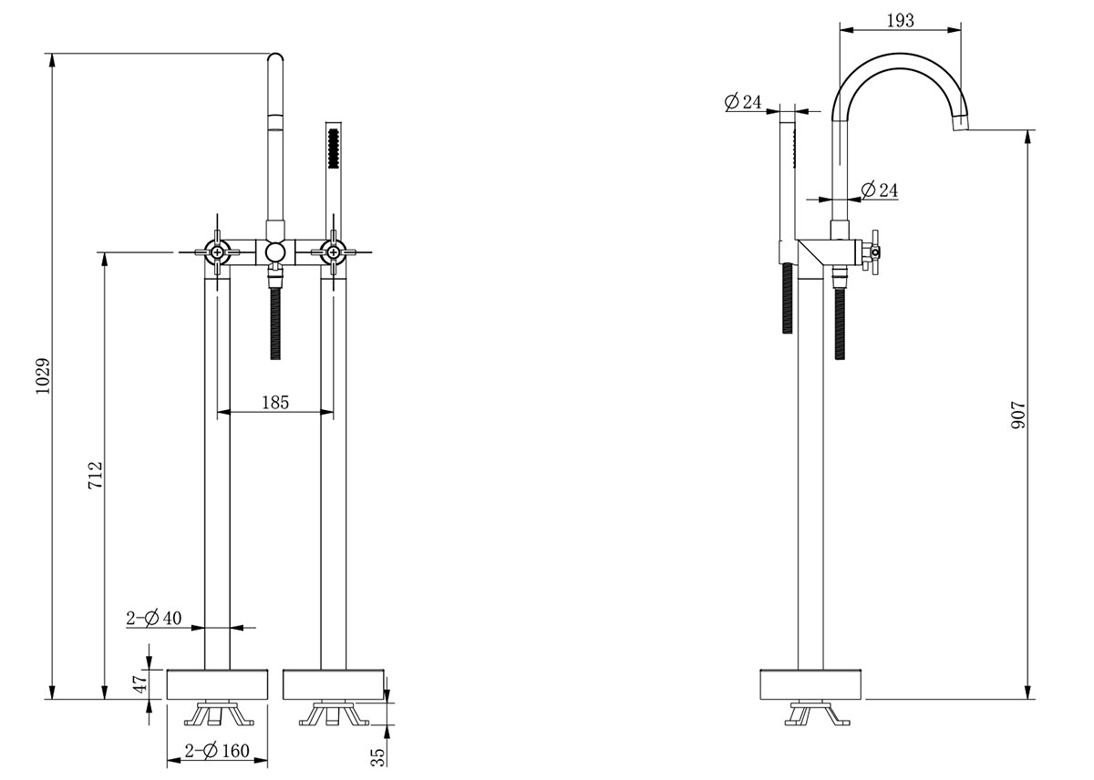 Robinet mélangeur de baignoire au sol et douchette, noir brossé, Cross II.
