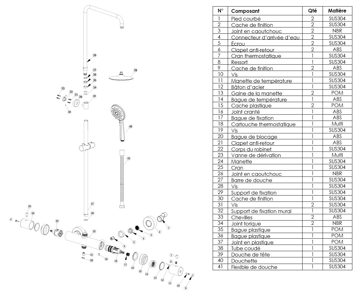 Colonne de douche avec mitigeur thermostatique, douchette ronde, Chrome, Châtelet III.