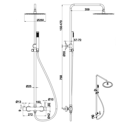 Colonne de douche avec mitigeur mécanique Ø25cm, avec douchette multifonction, Doré Rose, Châtelet